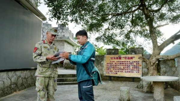 采訪組隨黃河振沿盤山公路蜿蜒而上,塌方痕跡尚在,山勢(shì)依舊峻峭。拐過十幾道彎,那坡縣天池國防民兵哨所的輪廓漸漸清晰。62歲的哨長(zhǎng)凌尚前早已等在門口。這位堅(jiān)守邊境44年的“活界碑”,與郵政有著特殊的情緣。