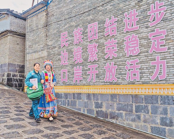 位于騰沖市猴橋鎮西南的猴橋村,作為世代守邊戍邊的軍事要沖與前沿陣地,則承載著厚重的家國使命。如今,由政府統一規劃的傈僳族風情村寨依山就勢、錯落有致,家家戶戶“推窗見綠、出門見景”。不遠處,莊嚴的猴橋口岸巍然矗立,紅旗招展,“感黨恩  聽黨話  跟黨走”的標語在陽光下熠熠生輝,訴說著邊疆人民的堅定信念。