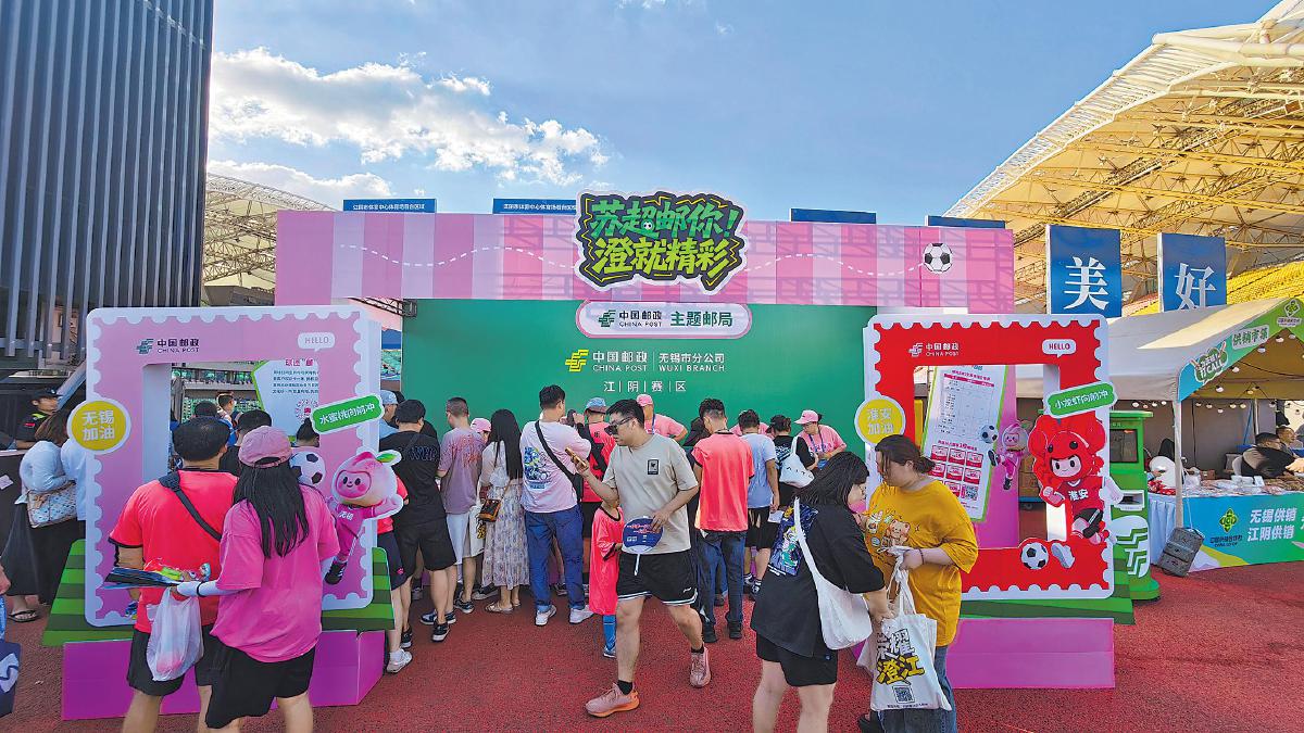無錫市分公司在“蘇超”江陰賽區比賽現場設置的臨時郵局大受歡迎。 □黃棟粱 攝