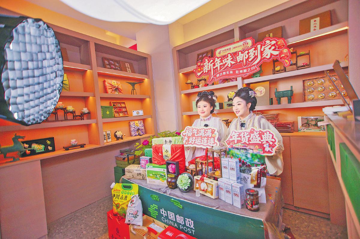洛陽郵政直播團隊在龍門主題郵局開展“新年味 郵到家”直播活動。