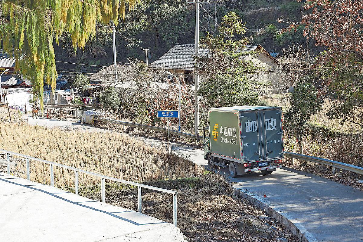 景寧郵政客貨郵專車開進徐崇村,將鄉村土特產推向全國大市場。□吳俊杰 攝