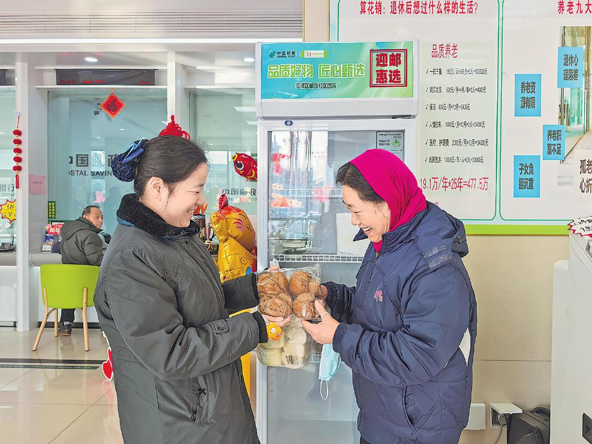 客戶到郵政網(wǎng)點(diǎn)自取團(tuán)購(gòu)預(yù)訂的饅頭。