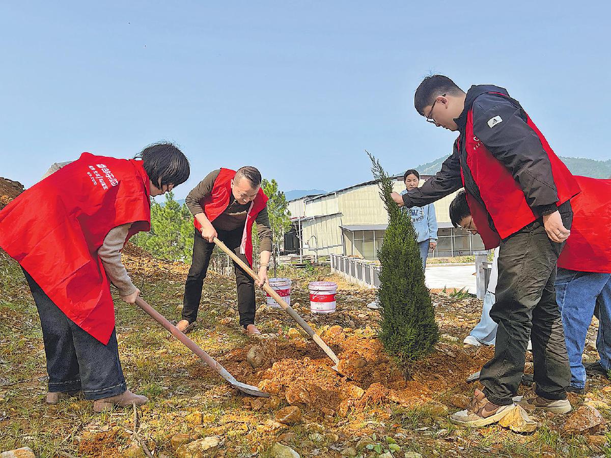 重慶市南川區(qū)郵政分公司黨總支聯(lián)合團(tuán)區(qū)委、水江鎮(zhèn)黨委開展黨建共建活動(dòng),組織黨團(tuán)員志愿者走進(jìn)下樂村,開展春季義務(wù)植樹。大家共栽種桃樹、櫻花樹300棵,踐行了綠色發(fā)展理念,生動(dòng)展現(xiàn)了“綠色郵政”的良好形象。□趙娟 攝影報(bào)道