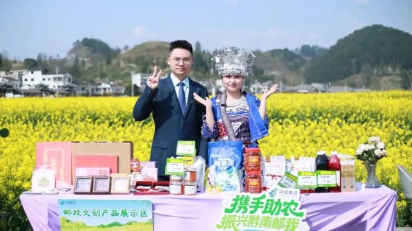 “金海雪山”因春季油菜花與漫山李花交相輝映而得名。今年,貴定郵政在去年基礎上優化服務,依托郵政流通服務車,將郵局搬進了花海。現場劃分出打卡拍照區、文創展示區、明信片書寫寄遞區和助農產品銷售區,讓郵政文化與田園風光融為一體。