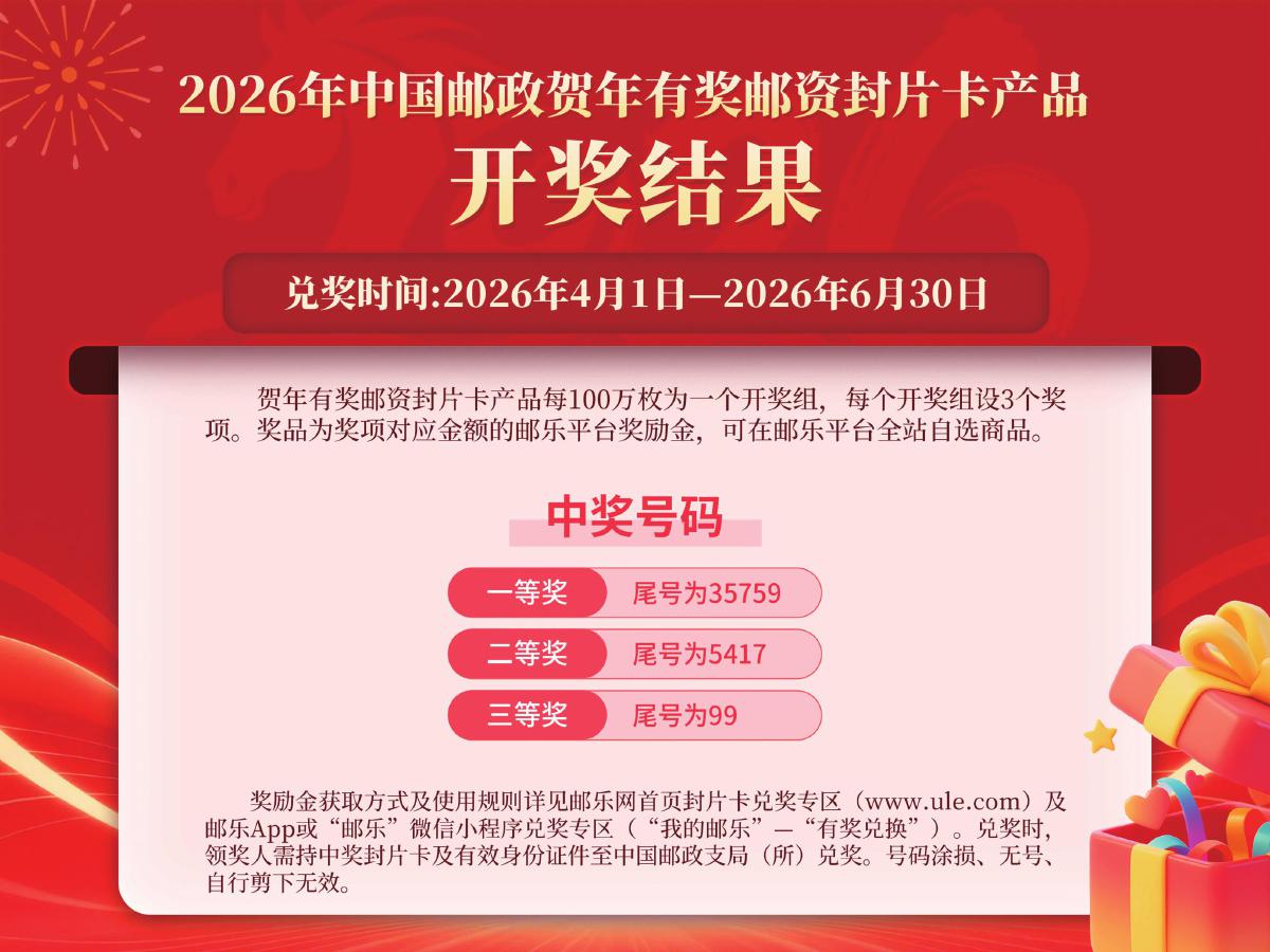 2026年中國郵政賀年有獎郵資封片卡產品開獎結果