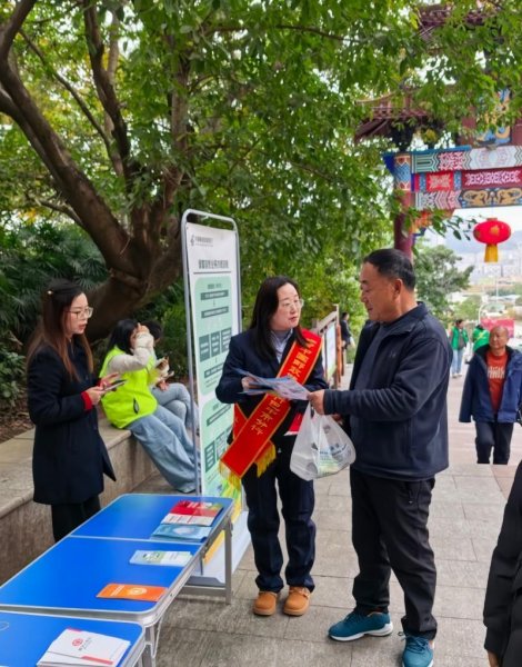 在望王山半山腰的八角亭里,支行青年志愿者們組成“流動宣傳小分隊”,融入登山人流。在一棵掛滿祈福紅綢的古柏樹下,志愿者們巧借“插柏丫”習俗,向歇息市民面對面講解“一次性信用修復政策”,普及征信知識:“個人征信就像這棵柏樹的根基,根基不穩,以后貸款買房、娃娃上學都受影響。”生動的比喻讓復雜知識變得通俗易懂,市民李女士感慨:“以前覺得征信離自己很遠,今天才曉得保護好信用就是保護自己的‘錢途’。”