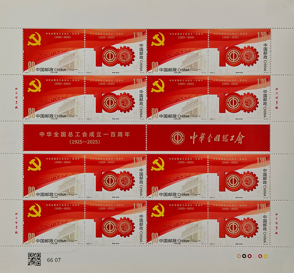 中國郵政定于2025年5月1日發(fā)行《中華全國總工會成立一百周年》紀(jì)念郵票1套2枚。詳情如下: